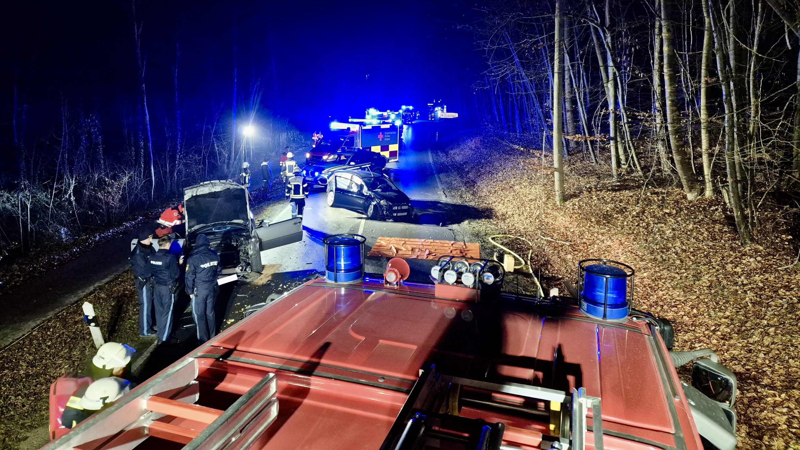 Am Montagnachmittag um 17:40 Uhr wurden wir mit dem Stichwort „THL 3 – Verkehrsunfall mit einem oder zwei PKW, Person eingeklemmt“ auf die Perchastraße im Bereich Berger Holz alarmiert.