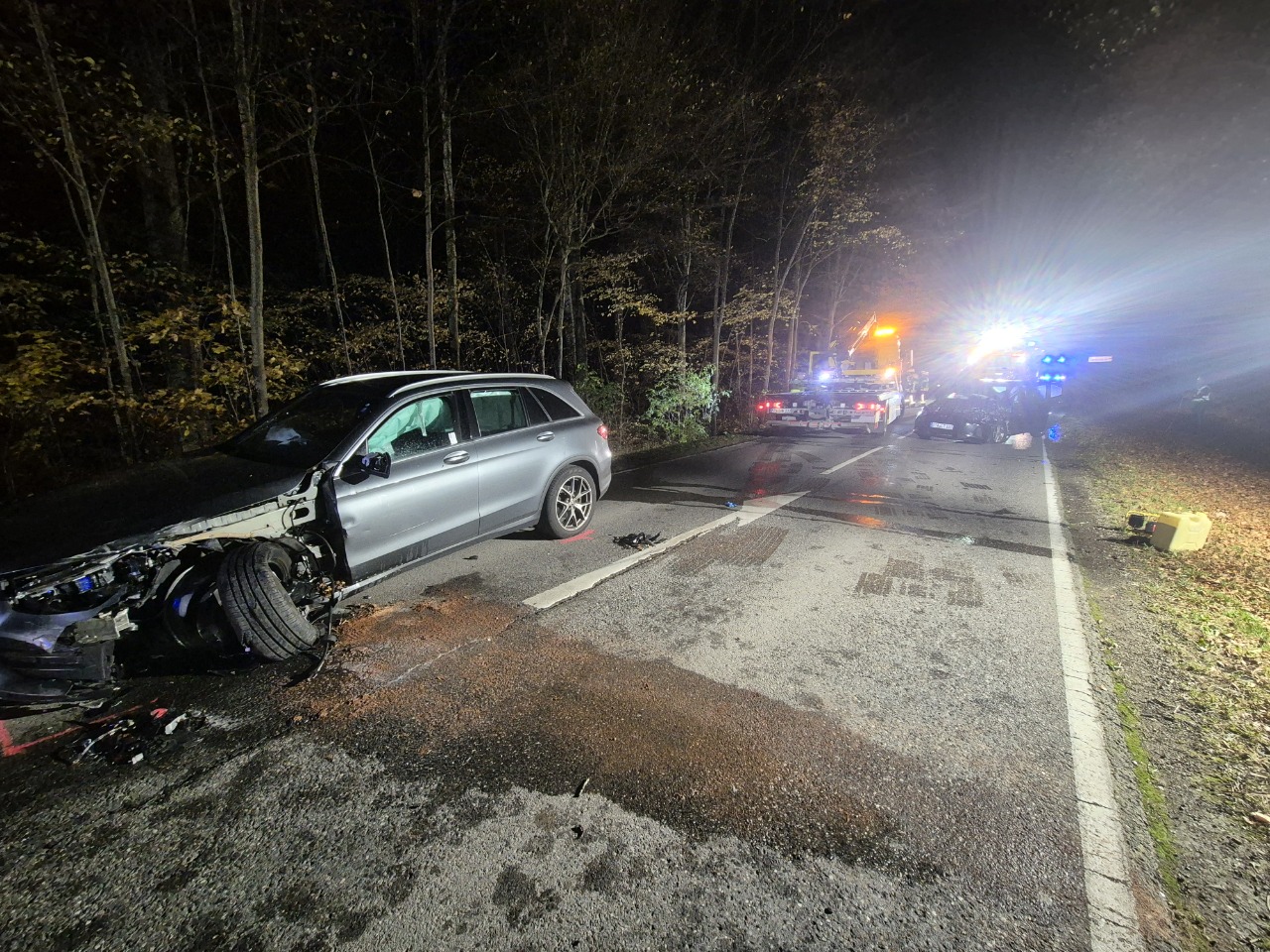 Die Feuerwehr Berg stellte den Brandschutz sicher, leuchtete die Einsatzstelle aus, band auslaufende Betriebsstoffe und übernahm in Abstimmung mit der Polizei die Straßensperrung.